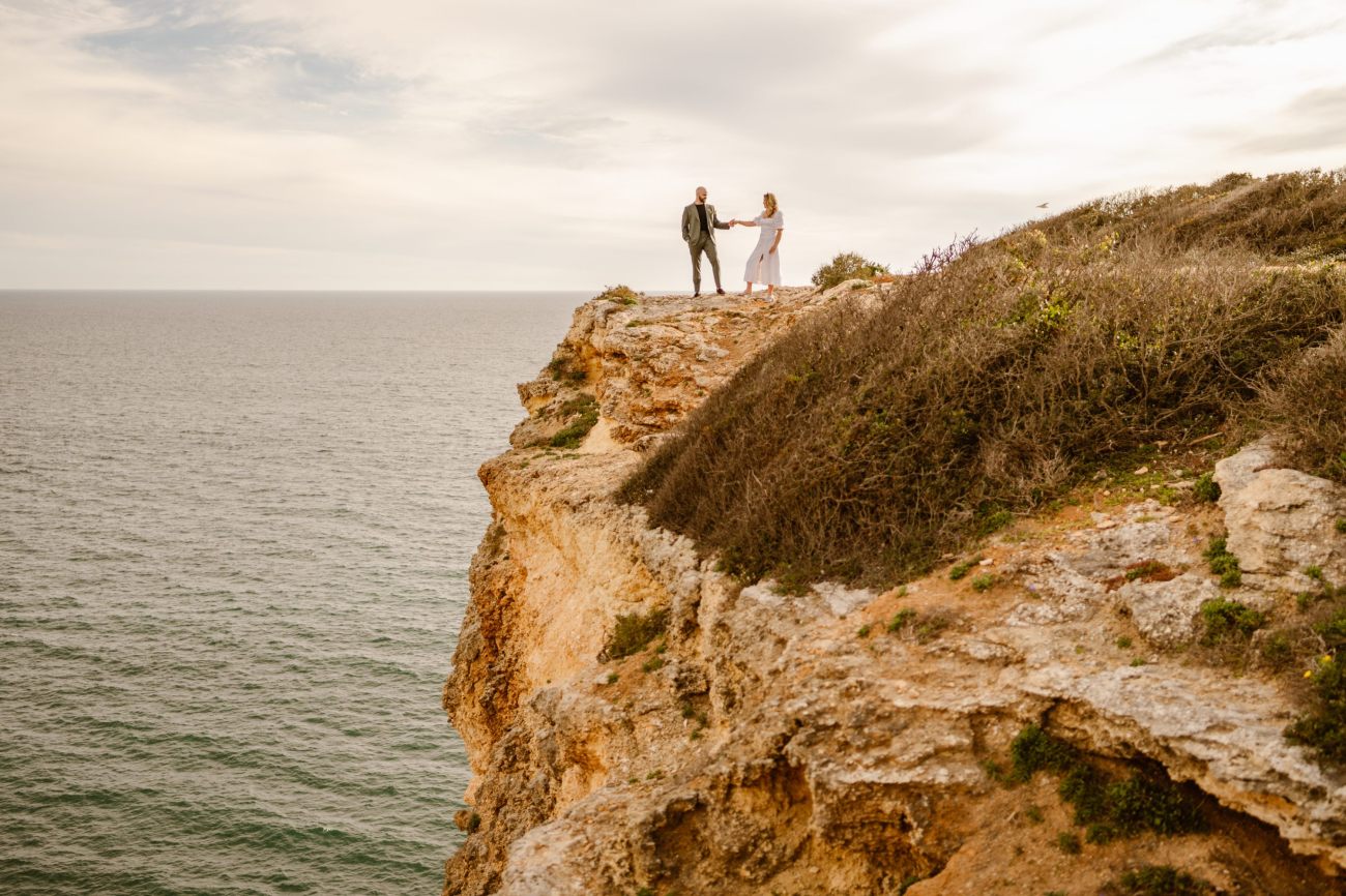 An elopement on top of the cliffs is an unforgettable experience, surrounded by dramatic landscapes and breathtaking views. Standing together at the edge, you feel a powerful sense of freedom and intimacy, as if the world fades away, leaving just the two of you. The cliffs create a stunning natural backdrop, with sweeping vistas of the ocean, valleys, or mountains stretching out beneath you. The fresh breeze, the sound of waves crashing below, and the vastness around you make your vows feel profound and timeless. It’s a truly awe-inspiring setting, perfect for a deeply personal and adventurous celebration of love.
