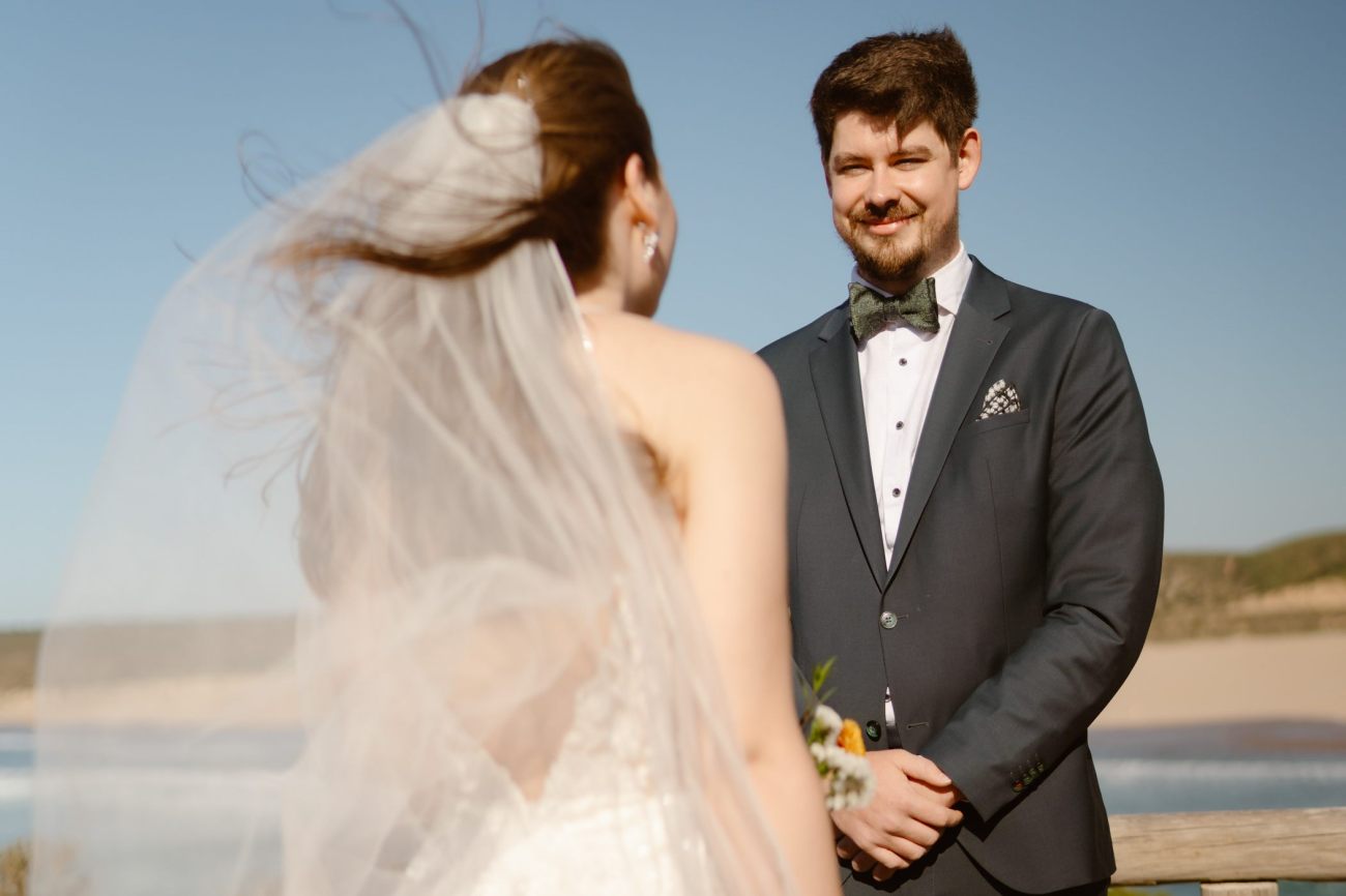 A beach elopement in Portugal offers a dreamy mix of golden sands, rugged cliffs, and the gentle sound of waves crashing along the shore. As the couple exchanges vows by the Atlantic, they're enveloped in the warm glow of the sun setting over the horizon. The unique Portuguese coastline, with its dramatic rock formations and hidden coves, creates an intimate and breathtaking atmosphere. With soft ocean breezes and the scent of salt in the air, their elopement feels timeless and serene—capturing the essence of Portugal’s natural beauty and romance.