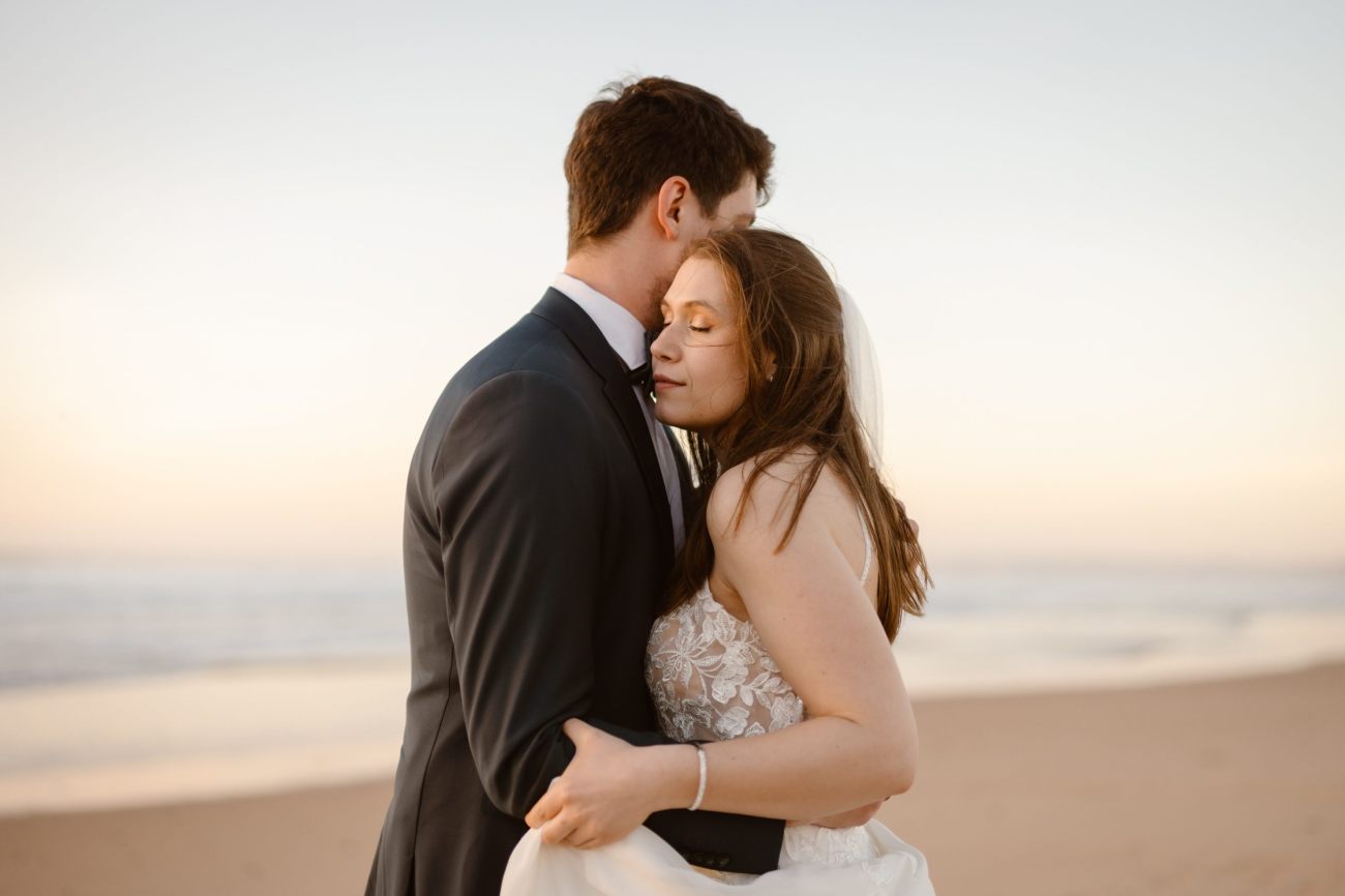A beach elopement in Portugal offers a dreamy mix of golden sands, rugged cliffs, and the gentle sound of waves crashing along the shore. As the couple exchanges vows by the Atlantic, they're enveloped in the warm glow of the sun setting over the horizon. The unique Portuguese coastline, with its dramatic rock formations and hidden coves, creates an intimate and breathtaking atmosphere. With soft ocean breezes and the scent of salt in the air, their elopement feels timeless and serene—capturing the essence of Portugal’s natural beauty and romance.