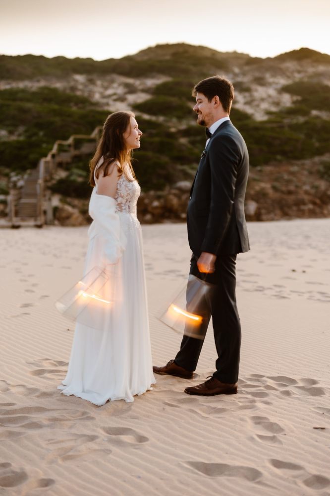 A beach elopement in Portugal offers a dreamy mix of golden sands, rugged cliffs, and the gentle sound of waves crashing along the shore. As the couple exchanges vows by the Atlantic, they're enveloped in the warm glow of the sun setting over the horizon. The unique Portuguese coastline, with its dramatic rock formations and hidden coves, creates an intimate and breathtaking atmosphere. With soft ocean breezes and the scent of salt in the air, their elopement feels timeless and serene—capturing the essence of Portugal’s natural beauty and romance.