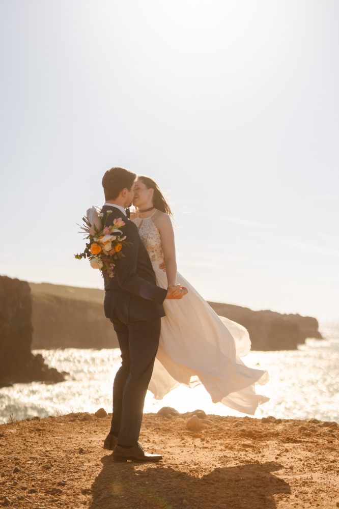 A beach elopement in Portugal offers a dreamy mix of golden sands, rugged cliffs, and the gentle sound of waves crashing along the shore. As the couple exchanges vows by the Atlantic, they're enveloped in the warm glow of the sun setting over the horizon. The unique Portuguese coastline, with its dramatic rock formations and hidden coves, creates an intimate and breathtaking atmosphere. With soft ocean breezes and the scent of salt in the air, their elopement feels timeless and serene—capturing the essence of Portugal’s natural beauty and romance.