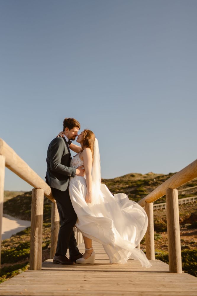 A beach elopement in Portugal offers a dreamy mix of golden sands, rugged cliffs, and the gentle sound of waves crashing along the shore. As the couple exchanges vows by the Atlantic, they're enveloped in the warm glow of the sun setting over the horizon. The unique Portuguese coastline, with its dramatic rock formations and hidden coves, creates an intimate and breathtaking atmosphere. With soft ocean breezes and the scent of salt in the air, their elopement feels timeless and serene—capturing the essence of Portugal’s natural beauty and romance.
