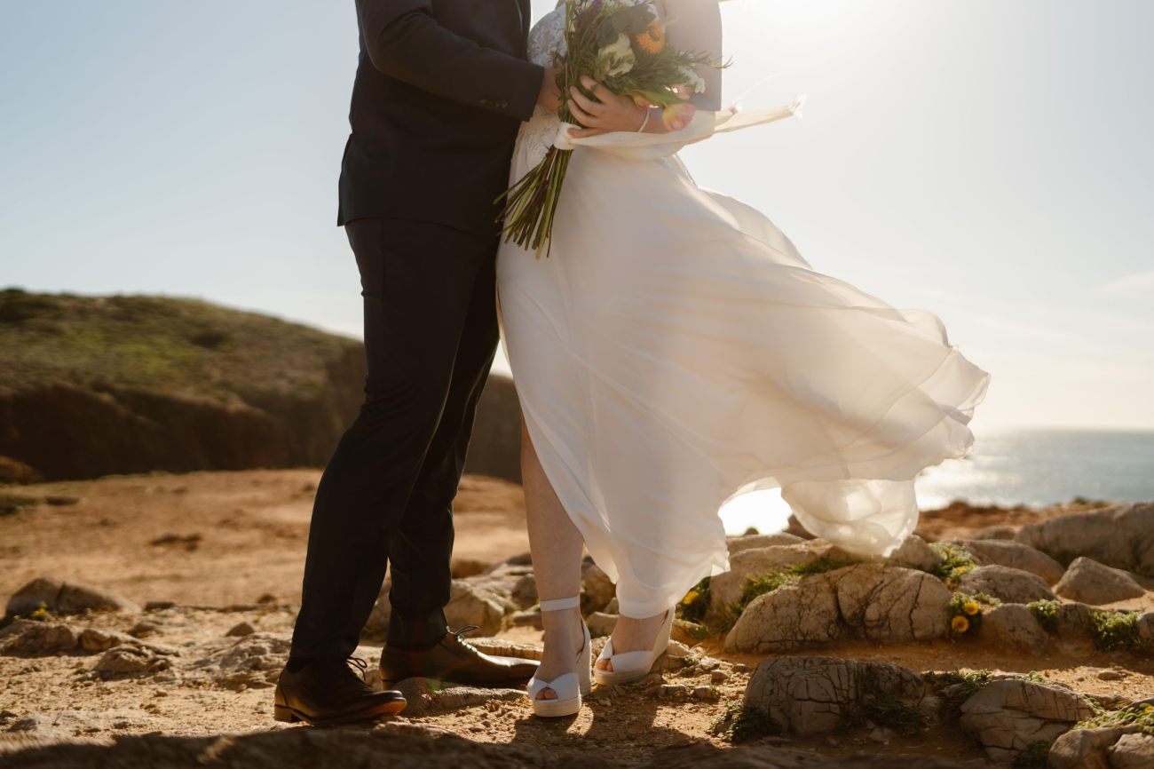 A beach elopement in Portugal offers a dreamy mix of golden sands, rugged cliffs, and the gentle sound of waves crashing along the shore. As the couple exchanges vows by the Atlantic, they're enveloped in the warm glow of the sun setting over the horizon. The unique Portuguese coastline, with its dramatic rock formations and hidden coves, creates an intimate and breathtaking atmosphere. With soft ocean breezes and the scent of salt in the air, their elopement feels timeless and serene—capturing the essence of Portugal’s natural beauty and romance.