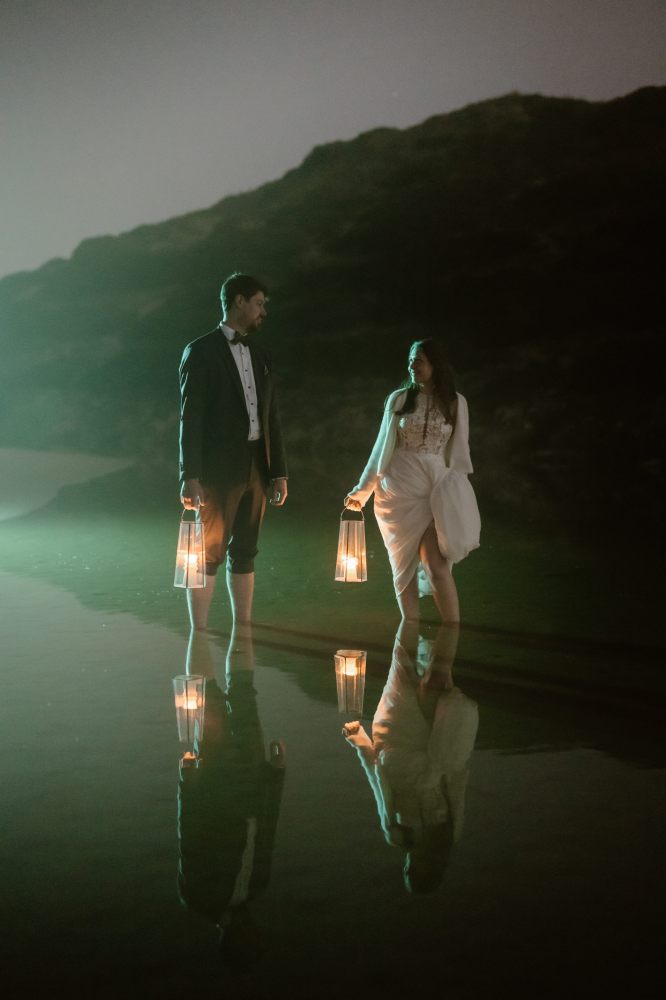 A beach elopement in Portugal offers a dreamy mix of golden sands, rugged cliffs, and the gentle sound of waves crashing along the shore. As the couple exchanges vows by the Atlantic, they're enveloped in the warm glow of the sun setting over the horizon. The unique Portuguese coastline, with its dramatic rock formations and hidden coves, creates an intimate and breathtaking atmosphere. With soft ocean breezes and the scent of salt in the air, their elopement feels timeless and serene—capturing the essence of Portugal’s natural beauty and romance.